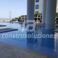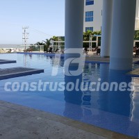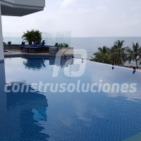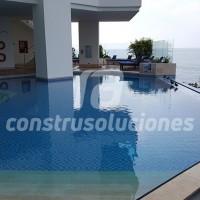 Cuando se trata de impermeabilizar una piscina de obra nueva o para rehabilitarla (mantenimiento correctivo), podrá realizarse con membranas de PVC que luego pueden ser enchapadas con acabados, convencionales o especiales, de diferentes tipos tales como cristanac, piedras coralinas, mármoles, porcelanatos, etc.