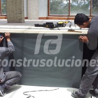 Membranas a base de PVC plastificado reforzado con armaduras de poliéster, fabricadas mediante calandrado, para la impermeabilización de estructuras de almacenamiento de aguas, que posteriormente son enchapadas con diferentes tipos de acabados, los cuales son instalados directamente sobre su superficie mediante la aplicación de adhesivos especiales de última generación, mostrando un aspecto de piscinas convencionales con la ventaja de una impermeabilización altamente segura y efectiva.